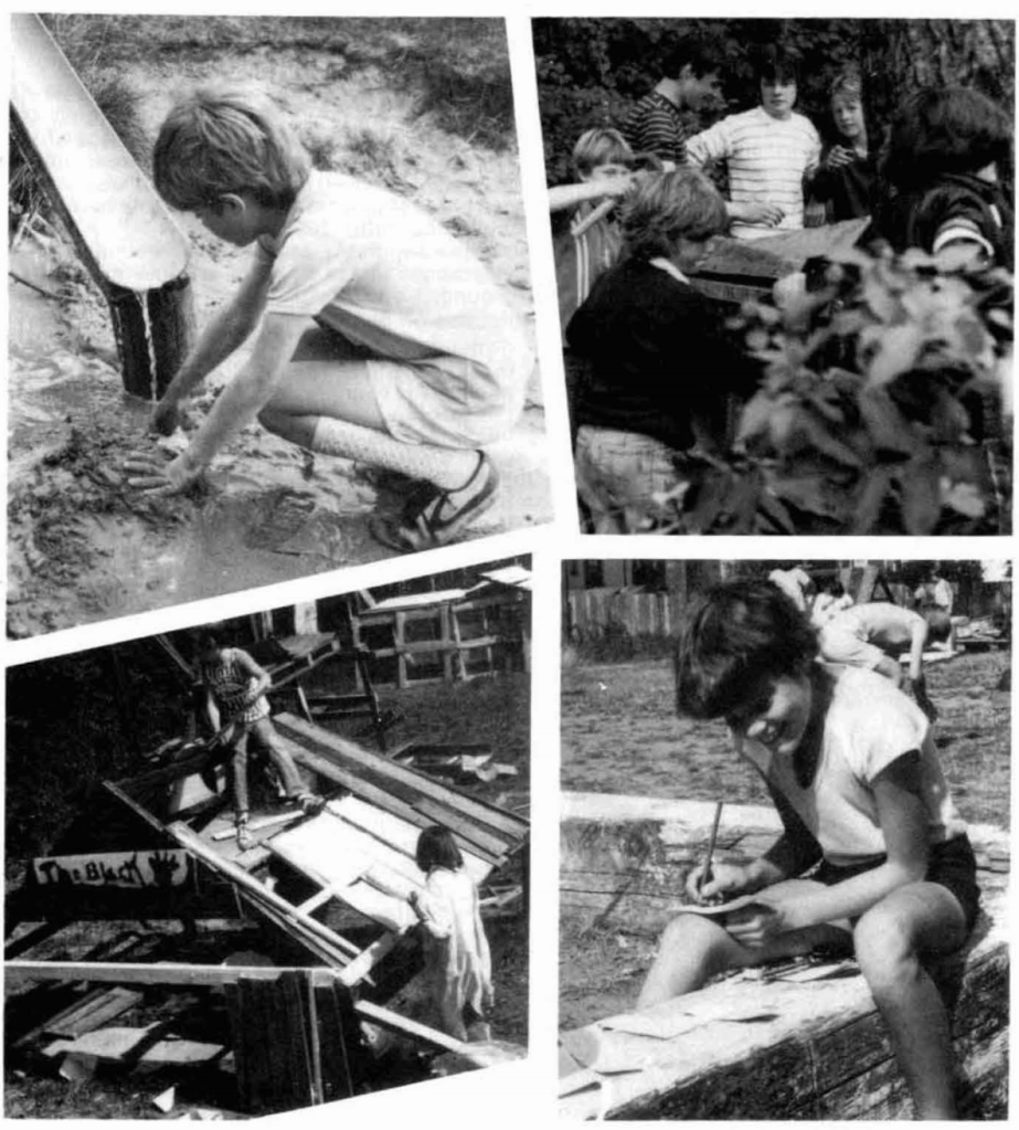 Images of kids playing in adventure playgrounds, published in Harry Shier’s Adventure Playgrounds: An Introduction, 1984.